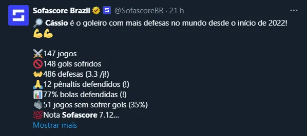 Dito isso, após um certo suspense, Cássio foi anunciado oficialmente e chegou à Toca da Raposa na última terça-feira (21). O goleiro revelado pelo Grêmio chega com uma marca impactante: é o dono do maior número de defesas no mundo de 2022.