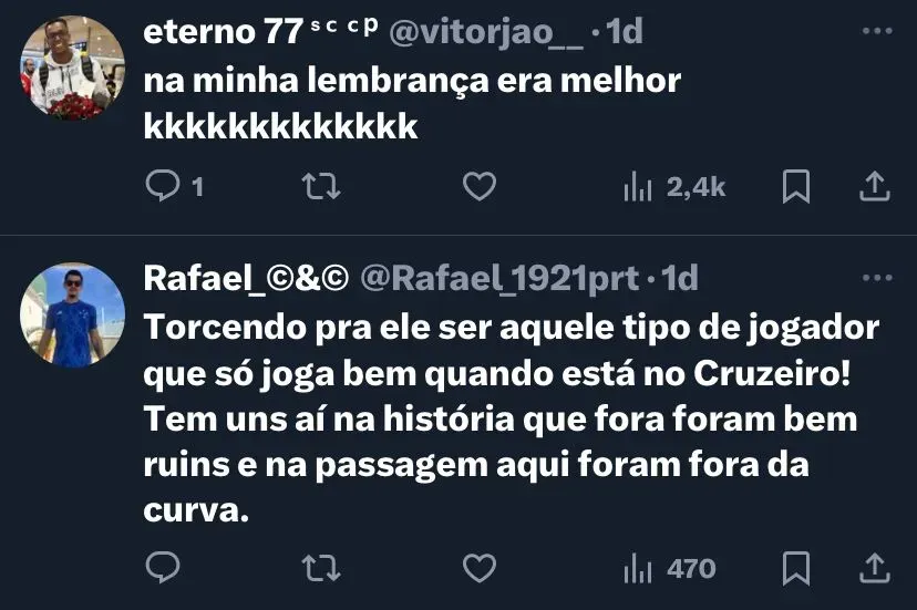 Além dele, o Cruzeiro também tenta trazer outros nomes para Fernando Seabra, como Matheus Henrique, que já se despediu do time em que estava, o Sassuolo, da Itália, em suas redes sociais.