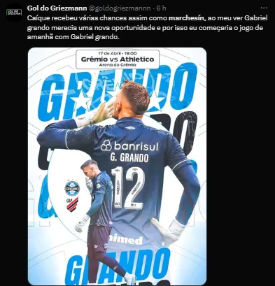 Em sua defesa, o argentino alegou que, em muitas vezes, as críticas passam do ponto contra ele e recebe culpa, em lances que não teria o que fazer. “Às vezes as críticas são exageradas, não sei se tem algo pessoal comigo, mas continuo a trabalhar, dar meu melhor. A bola entra no ângulo, é culpa do goleiro. Trato de dar o melhor no dia a dia, quem jogar vai tentar dar o melhor ao Grêmio”, avaliou Marchesín.