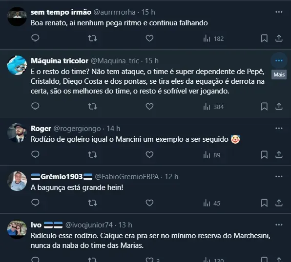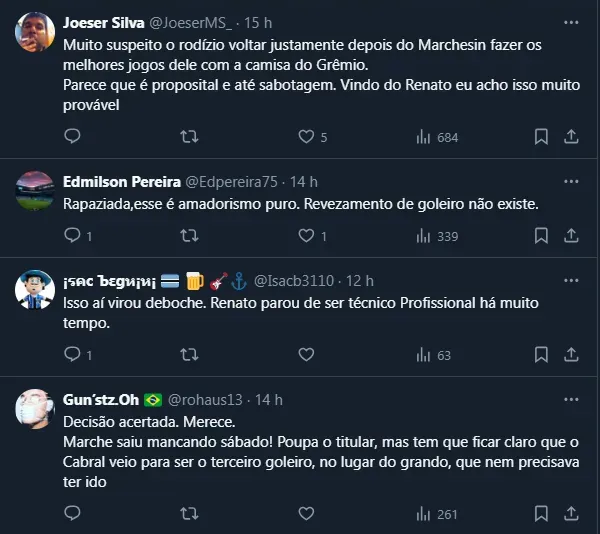 Vale mencionar que, após sofrer com problemas na meta em 2023, a direção gremista resolveu ir ao mercado e trouxe dois novos arqueiros para a temporada, mas nenhum deles chegou “tomando conta” da função.