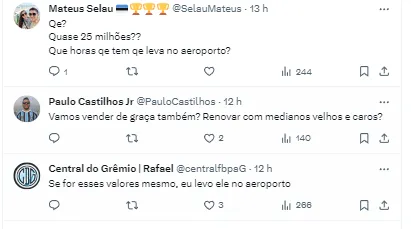 Porém, o Grêmio faz jogo duro, pois não quer liberar o defensor. Os portugueses já sinalizaram que vão tentar uma última proposta pelo jogador. A ideia é pagar 4,5 milhões de euros (valor que corresponde a cerca de R$ 24 milhões na cotação atual).