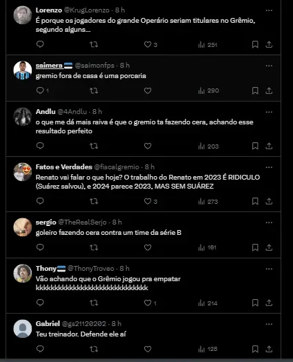 Renato iniciou sua fala comemorando o resultado conquistado fora de casa em meio a algumas adversidades e relembrou que a equipe decide em casa ao lado do seu torcedor. “Estamos perdendo jogadores, por isso parabenizo meu grupo. Toda hora jogadores diferentes. Brigamos, lutamos, tínhamos que sair daqui vivos, saímos. Teremos mais 90 minutos na Arena, frente à nossa torcida. Não que o Grêmio esteja classificado, mas conseguimos um bom resultado fora de casa por todos esses problemas”, avaliou.