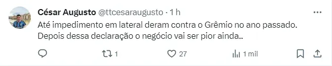 “Nessa bagunça eu não vou entrar não. A seleção brasileira é meu sonho, mas a CBF tem que tomar vergonha na cara. A verdade é essa. Eu não quero chegar na seleção brasileira e ser mais um. Se um dia eu tiver que chegar lá. Mas chegar lá e daqui a 2 meses… “vai embora e me dá aí saco de arroz, saco de feijão, acabou tudo”, disse o treinador do Grêmio, complementando.