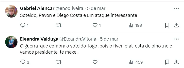 O mesmo vem acontecendo com Soteldo, que chegou com uma das grandes contratações da equipe, mas acabou se lesionando. Apesar da sua ausência não ter tido tanto impacto, diante dos bons nomes da equipe, a comissão técnica já projeta o seu retorno.