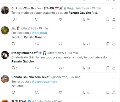 Renato Gaúcho ainda avisou que quem todos irão elogiar quem está para chegar no Grêmio. O clube ainda segue tentando repor a posição de Luís Suárez, que acertou com o Inter de Miami.