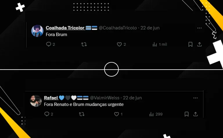 A coletiva de imprensa pós Gre-Nal também contou com o treinador deixando o cargo à disposição. Por outro lado, boa parte da torcida pede uma mudança na comissão técnica do Grêmio.