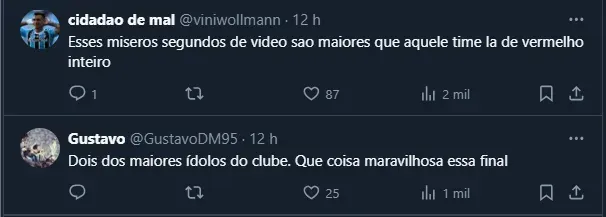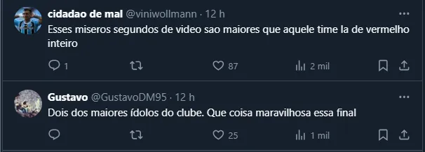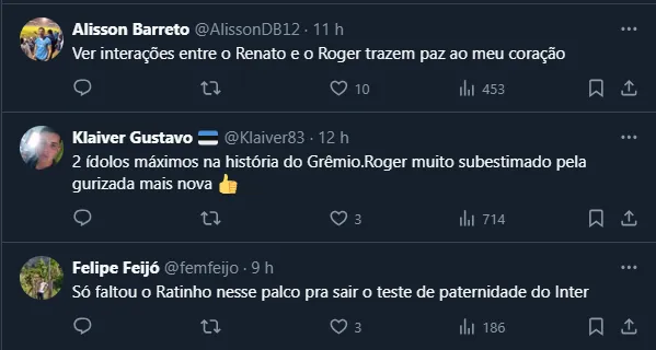 Além de exaltar o trabalho de Roger Machado e também receber alguns elogios, Renato aproveitou também para dar uma “cutucada” no principal rival do Imortal, o Internacional, que não vence o estadual há oito anos.