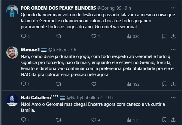 “Não existiu conversa sobre renovação, mas é algo que não me preocupa pela pessoa que é o Geromel e pelo que ele significa para a história do Grêmio, assim como a permanência dele se debateu e se resolveu muito rapidamente. Nada impede de estender o contrato, ele foi importantíssimo nesse início do ano”, finalizou.