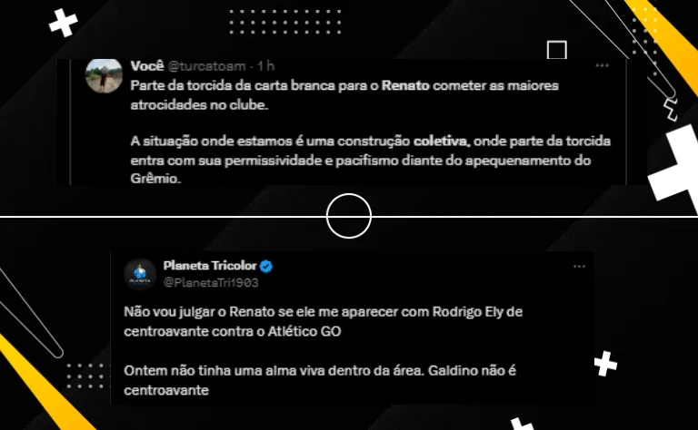 “É uma coisa. Outra coisa é falta de opções, porque eu tenho jogadores machucados, praticamente todos os meus atacantes hoje estavam jogando. Tive que colocar um zagueiro meu que é bom de cabeça no ataque justamente por falta de opções. Eu nunca vou expor o grupo”, completou o ídolo gremista.