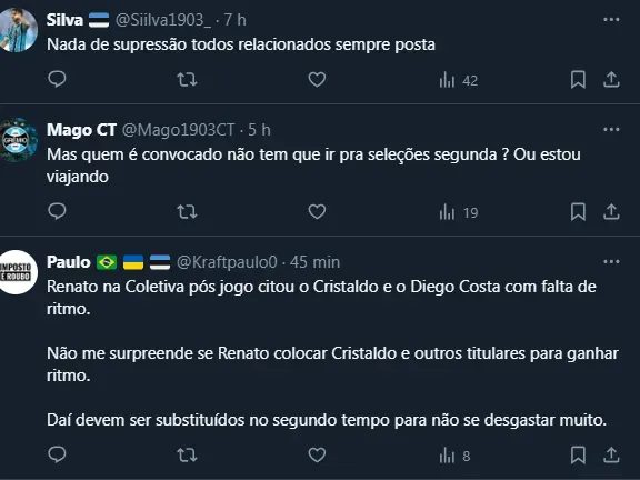 Vale lembrar que, até o momento, o Grêmio disputou quatro partidas pelo Brasileirão e somou seis pontos, com dois triunfos e duas derrotas. A bola vai rolar às 16h, no Couto Pereira.