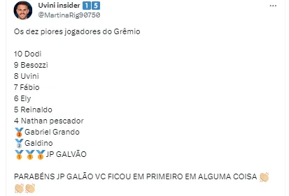 Isso se deve ao fato de que em 2023, na maior parte da temporada, o jovem formado na base gremista foi titular, mas, agora, não só perdeu a vaga, como se tornou a terceira opção da meta do Tricolor Gaúcho.