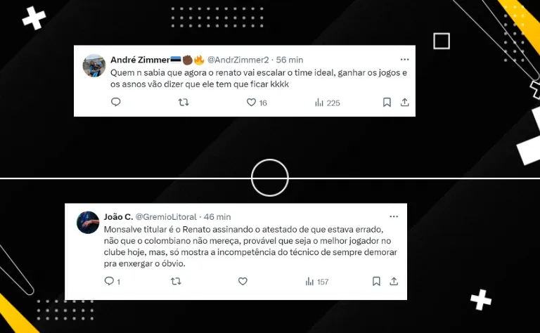 Resta aguardar se o colombiano vai atuar sozinho na armação ou com Franco Cristaldo. O camisa 11 gremista chegou nesta janela de transferências e, com boas atuações, ganhou elogios de Renato, como apontou matéria do Bolavip Grêmio.