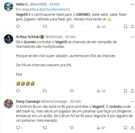 “Outros clubes estão aparecendo. Conosco ainda não falaram (Grêmio)“, concluiu. Nas redes sociais, no entanto, a torcida gremista também aprovou a chegada do ‘pirata’, como é conhecido entre os vascaínos.