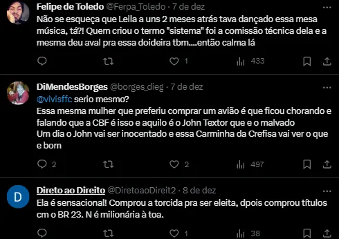 Os embates públicos com Leila Pereira, presidente do Palmeiras, marcaram o capítulo final de Textor no Campeonato Brasileiro. A troca de declarações incluiu acusações de desequilíbrio e manipulação no campeonato.