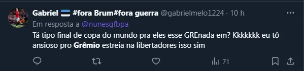 Torcida do Grêmio critica Brum