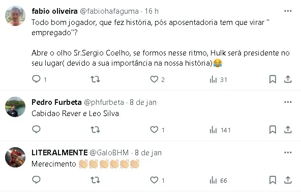 Enquanto Réver celebra esse novo capítulo em sua vida profissional, a opinião da torcida nas redes sociais não é unânime. Enquanto alguns defendem o merecimento do ex-zagueiro, outros não manifestam a mesma opinião.