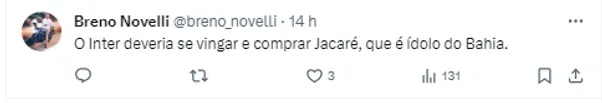 Porém, a situação do volante parece estar quase toda certa com o Bahia, ainda sim, a equipe gaúcha segue na esperança de que o negócio não vire, para que o Internacional possa retomar as negociações.