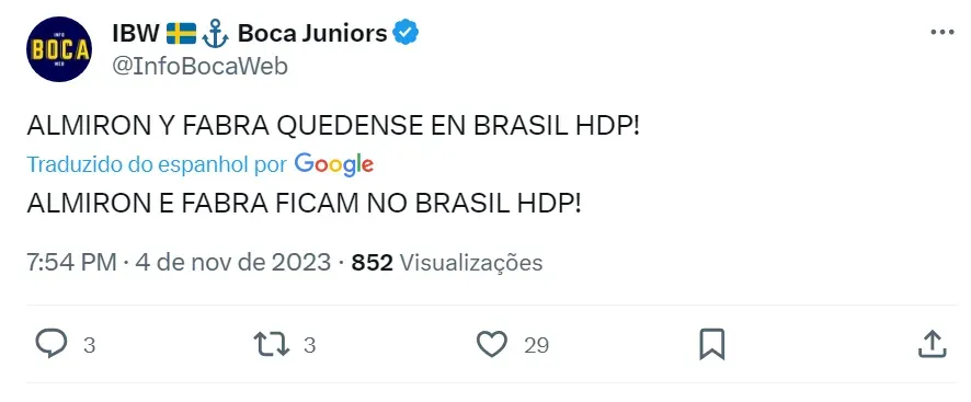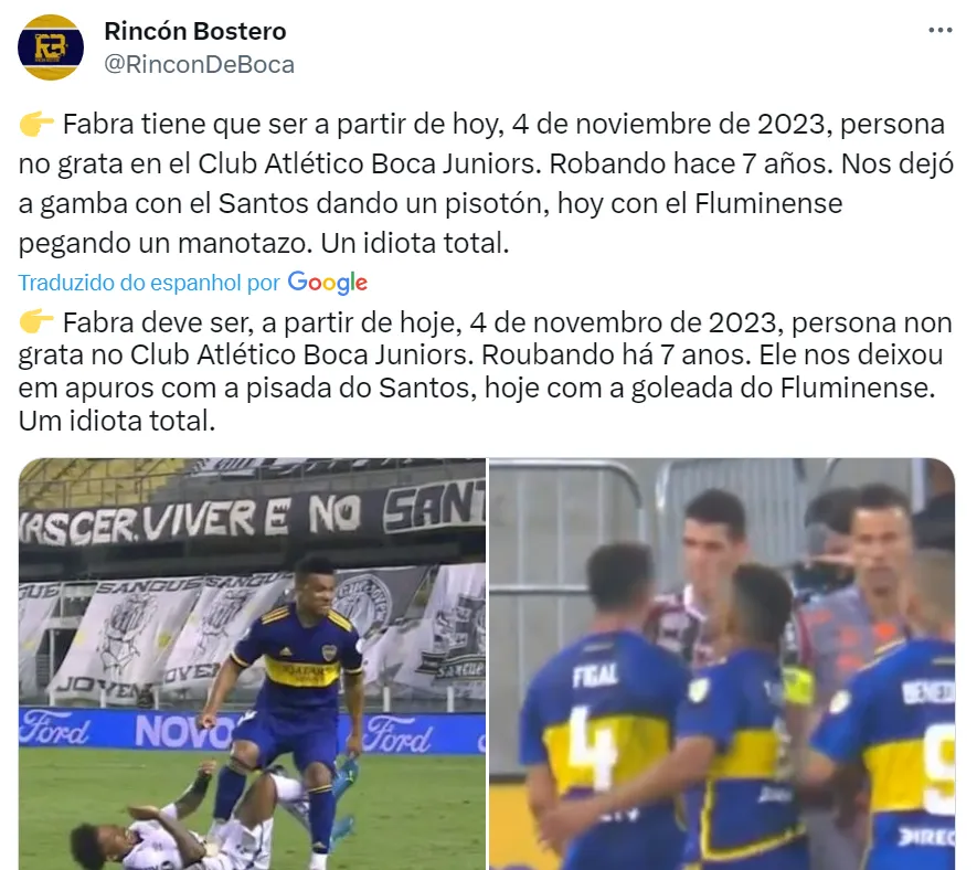Os argentinos acreditam que Almirón foi muito mal na final realizada no Maracanã. Ainda sobre Fabra, a torcida do Xeneizes lembrou que ele também foi expulso contra o Santos, na semifinal da Libertadores de 2020.