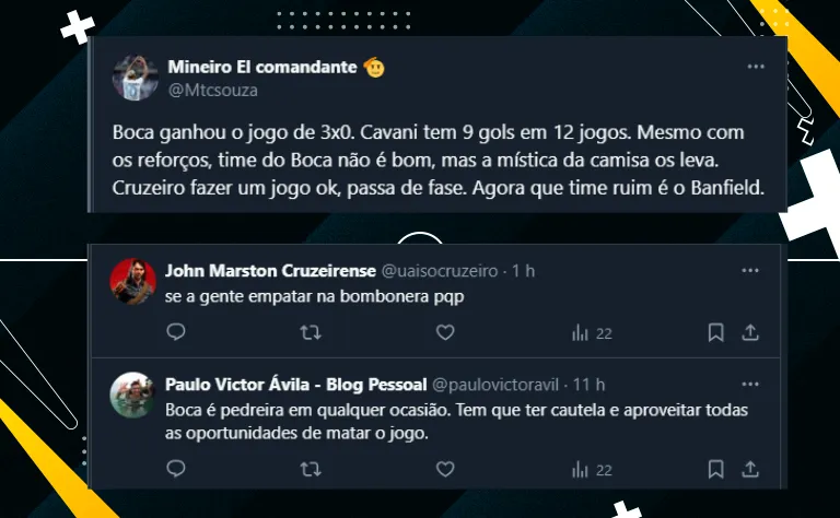 Antes de enfrentar o Cruzeiro, os xeneizes terão o Barracas Central, no domingo (4), às 17h30 (de Brasília), além do Independiente Rivadavia, no outro domingo (11). Já o Cruzeiro terá Fortaleza e Galo pela frente no período.