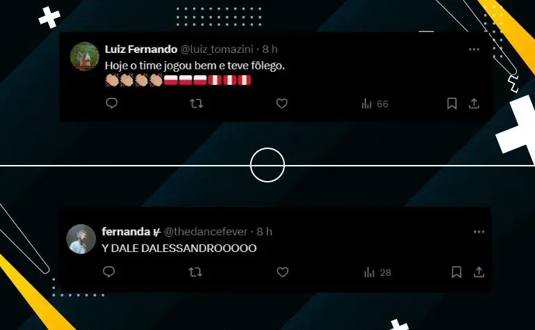 Outros fãs destacaram o espírito de D’Alessandro na vitória: “A vitória teve o espírito do D’Alessandro, com muita luta e entrega.” Alguns torcedores até mencionaram o papel do ex-jogador na comissão técnica, afirmando que sua presença teria contribuído para a vitória.