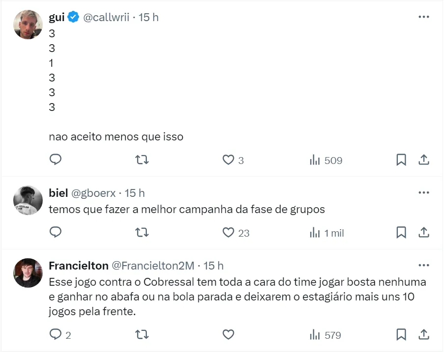 Porém, o momento da equipe não é bom e acabou de ser eliminado do Campeonato Paulista para o Novorizontino. Apesar da pressão da torcida, Julio Casares deve segurar Carpini no cargo.