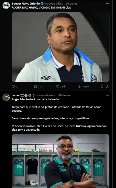 “Tive o prazer de ser treinador dele lá no Fluminense, ter convivido com ele. Mesmo quando ele estava jogando no Grêmio, ele foi um grande jogador. Jogou muito, jogou muito. E torço muito por ele nessa profissão”, completou Renato.