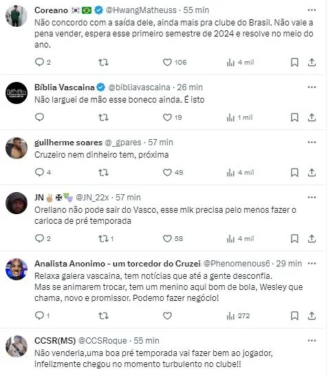 As conversas estão em estágio inicial, no entanto, o novo técnico da equipe mineira, Nicolás Larcamón, aprecia o futebol de Orellano, o que pode impulsionar as tratativas para a transferência.