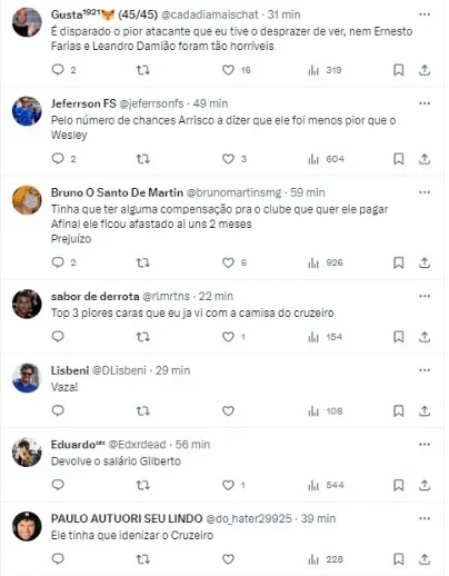 Dessa forma, se algo evoluir, deve sair, ainda mais que tem um dos maiores salários do elenco cruzeirense (R$ 670 mil mensais), ou seja, sua saída abriria espaço para a Raposa buscar atletas de mais relevância no mercado.