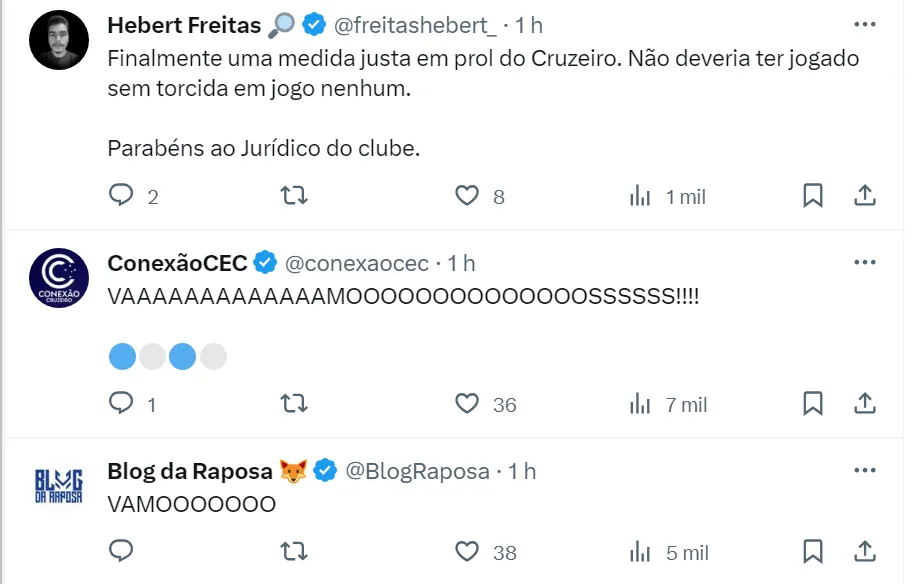 Além disso, o Cruzeiro conseguiu a liberação junto ao STJD para atuar com público contra o Athletico Paranaense, na quinta-feira (30), no Mineirão, pela 36ª rodada do Campeonato Brasileiro.