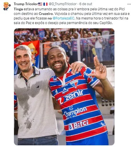 Neste contexto, veio à tona que uma contratação para o ataque chegou bem perto de acontecer, mas, no último passo para concretizar a transferências, o jogador desistiu e abriu mão de todas as nuances já acertadas com a gestão de Ronaldo Fenômeno na Toca. Trata-se do atacante Tinga, do Fortaleza, que em entrevista revelou o motivo de não ter assinado com o Clube Celeste, preferindo permanecer no tricolor do Pici.