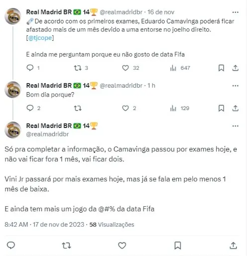 Para piorar, mais um craque do Madrid vai ficar de fora: após os exames realizados nesta sexta-feira (17) em Eduardo Camavinga pelos Serviços Médicos, foi-lhe diagnosticada uma rotura do ligamento lateral externo do joelho direito.