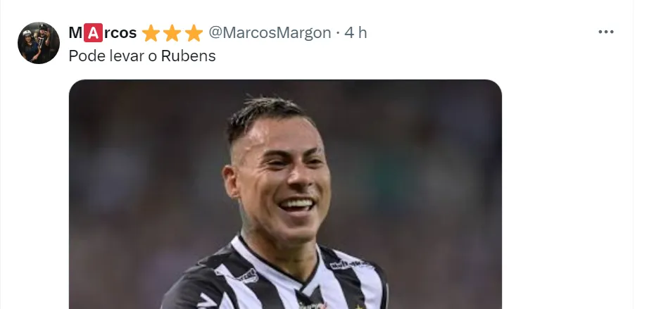 Já nesta quarta-feira (6), foi especulado que o São Paulo poderia ter interesse no lateral Rubens. No entanto, como informou Jorge Nicola, o Atlético-MG descarta negociar o jogador com times brasileiros.
