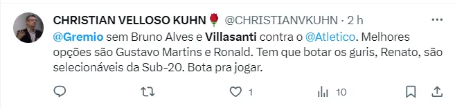 Bruno Alves foi expulso contra o Corinthians, e Villasanti recebeu o terceiro cartão amarelo. Agora para substituir a dupla, o técnico Renato Gaúcho tem seis alternativas.