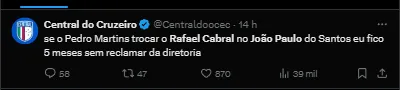 Nas redes sociais, os torcedores celestes foram a loucura e comemoraram a possibilidade de realizar essa negociação. Os cruzeirenses se mostraram animados com a possibilidade.