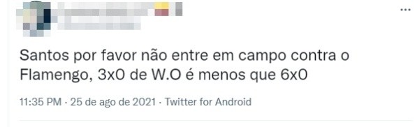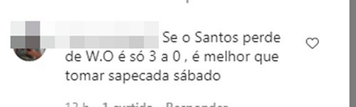 “Não tem como o Santos não entrar em campo e darW.O.?“, questionou um tuiteiro. “Se o Santos perde por W.O. é só 3 a 0 (no placar), é melhor do que tomar sapecada no sábado”, comentou outro, no Instagram.
