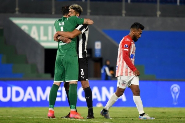 Martín Silva e Alexander Barboza se abraçam após classificação do Libertad. Foto: Getty Images