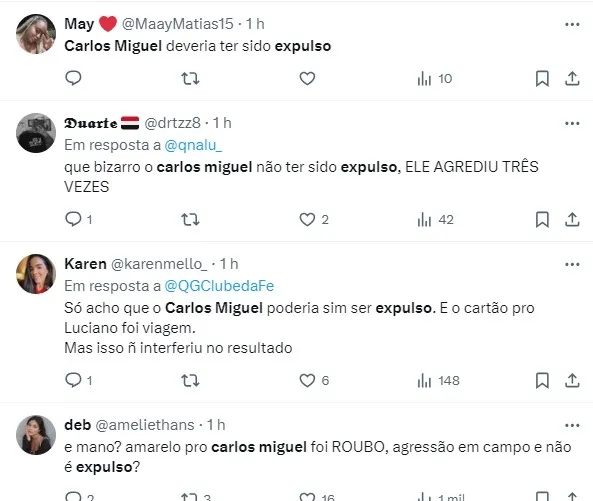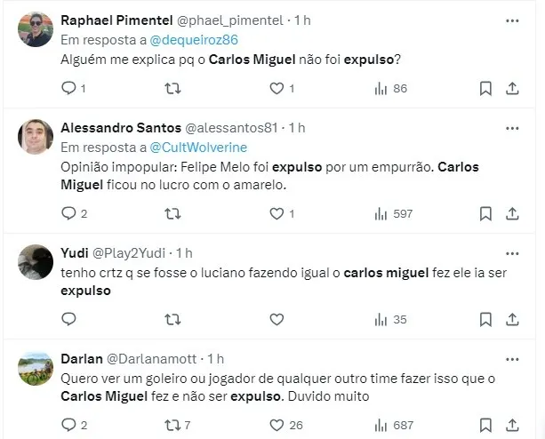 São-paulinos reclamam da não expulsão de Carlos Miguel