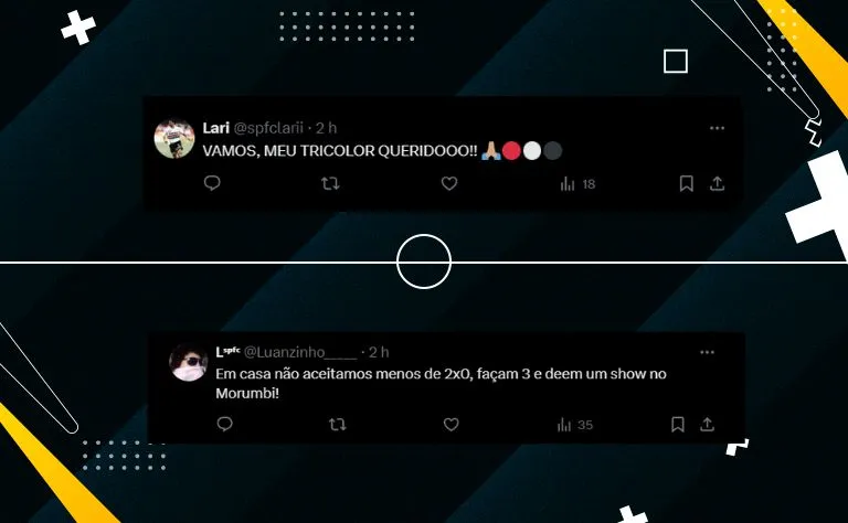 Mensagens como “Vamos, São Paulo! Rumo ao bi!” e “Ganhar ou ganhar… pra cima, Tricolor!” dominaram os comentários do perfil oficial do clube no X, antigo Twitter. O sentimento foi misto, com uma clara divisão entre apoio e frustração sobre a partida desta terça-feira.