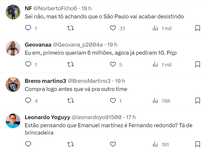 Ou seja, o São Paulo vai precisar abrir o bolso e subir a oferta se quiser fechar a contratação de Martínez. O treinador Dorival Júnior gosta do futebol do volante e deu aval para o Tricolor Paulista tentar contratar o jogador.