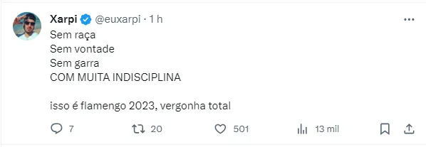 Em 2023, foram 7 títulos perdidos pelo Flamengo. Na saída de campo, Arrascaeta falou sobre o tema: “É uma temporada atípica do que temos apresentado nos últimos anos. A gente pecou durante o ano todo então a culpa é totalmente de nós. E agora é se preparar para o ano que vem, e temos que ser bem melhor do que esse ano”.