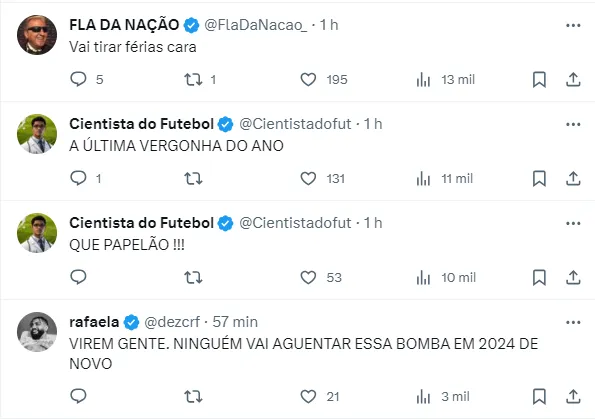 Agora, o elenco descansa e pega férias para a próxima temporada. O primeiro compromisso do Flamengo em 2024 será pelo Campeonato Carioca. A estreia será contra o Audax-RJ, no dia 18 de janeiro.