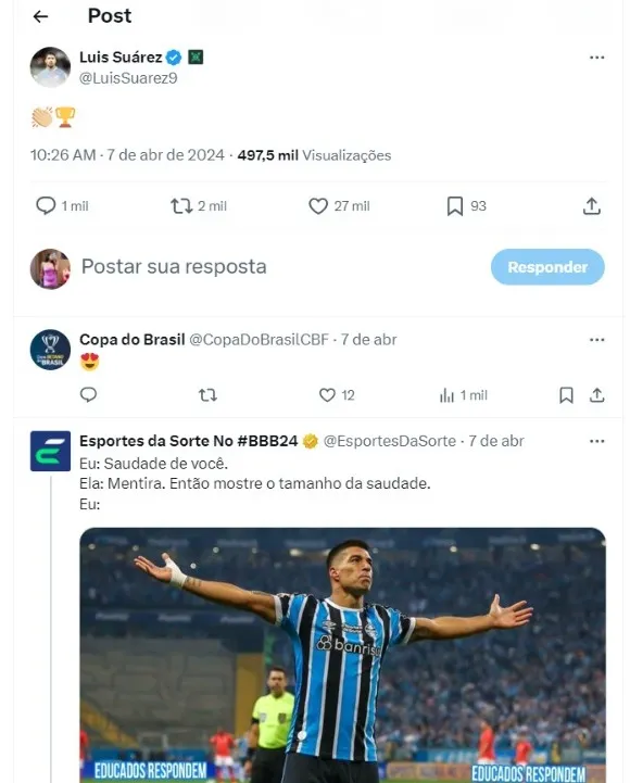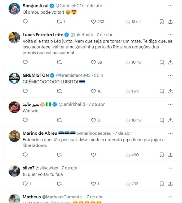 Já nos números, Luisito fez 54 jogos pelo Grêmio e marcou 29 gols. Após o comentário, a torcida do Imortal Tricolor pediu o retorno do uruguaio nos comentários – veja abaixo a repercussão.