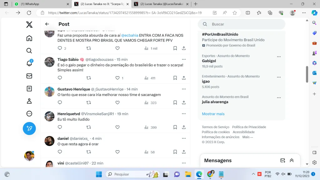 Nos últimos dias, todavia, o staff do jogador admitiu que ele ainda tentará o sucesso no Velho Continente em 2024, mas sem descartar, a médio prazo, um negócio com o Galo.