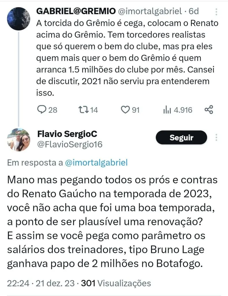 Apesar do bom desempenho da equipe este ano, Renato Gaúcho pretende ir além na próxima temporada. O treinador deseja garantir uma reformulação do elenco para 2024.