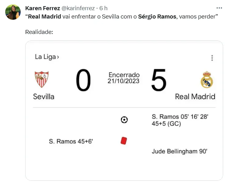 O Real Madrid voltará a campo no próximo sábado (21), quando enfrenta o Sevilla, em jogo válido pela 10ª rodada do Campeonato Espanhol. O último compromisso do time comandado por Carlo Ancelotti antes da parada para a Data FIFA foi diante do Osasuna e os Blancos aplicaram uma goleada de 4 a 0, se isolando na ponta da tabela da competição, com 24 pontos conquistados.