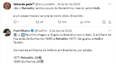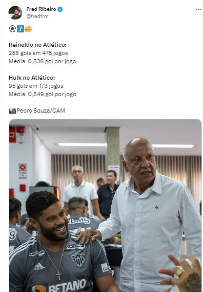 Maior artilheiro da história do Clube, Reinaldo tem 255 gols em 475 partidas. Ídolo do Galo nessa ‘nova geração’, Hulk revelou como o ex-atacante o inspira dentro das dependências atleticanas.