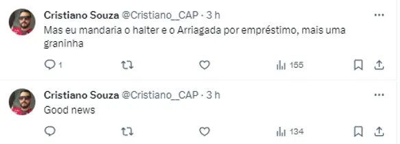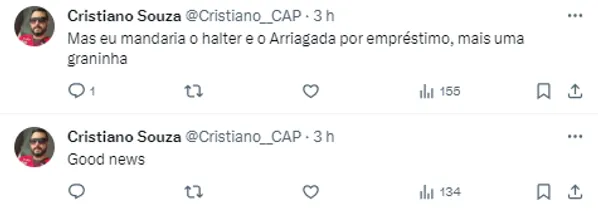 Ao que tudo indica, Luan também foi liberado para o América-MG, com o Athletico-PR pensando em conseguir o atacante Mastriani, para a temporada de 2024.