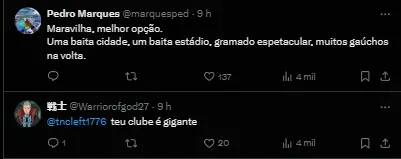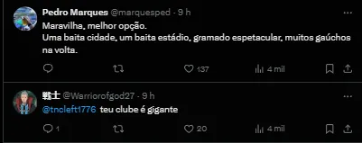 As informações atualizadas são de que a Arena Grêmio, por exemplo, só receba jogos no segundo semestre de 2024. Mas as partidas atrasadas do Tricolor estão marcadas para o final de maio e começo de junho. Com isso, o Imortal já tem uma possível casa para disputar a competição continental.