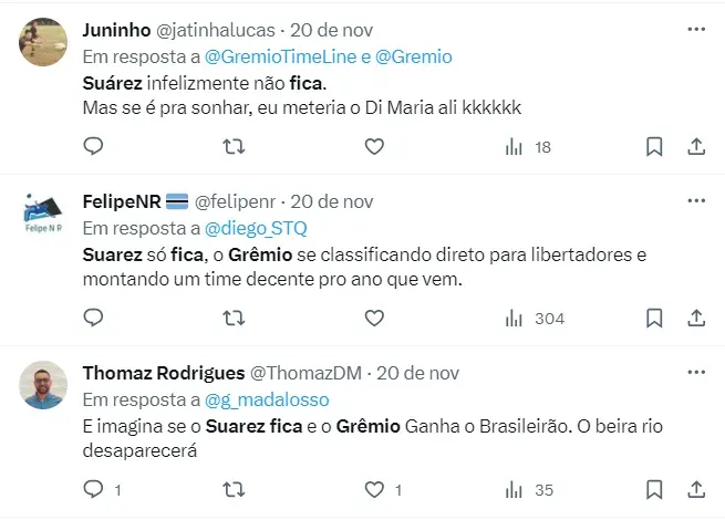 Enquanto o término do contrato se aproxima, a torcida gremista se mobiliza pedindo para o camisa 9 ficar em Porto Alegre. Recentemente, o técnico Renato Portaluppi jogou um balde de água fria nos tricolores afirmando que Suárez não vai ficar no clube.
