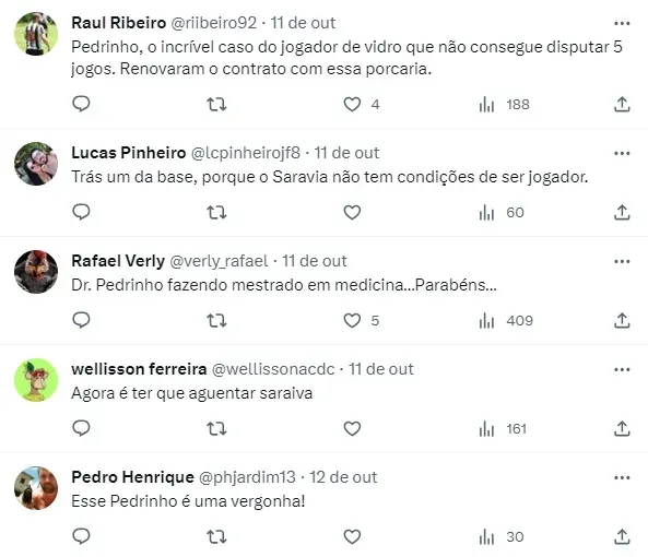 Vale lembrar que os dois jogadores estão “de molho” desde antes da partida contra o Coritiba, no dia 08 de outubro. O volante acabou sentindo dores no joelho direito; o ex-Corinthians, por sua vez, sentiu dores musculares. A meta é tê-los disponíveis para os próximos duelos, os quais prometem ser muito difíceis.